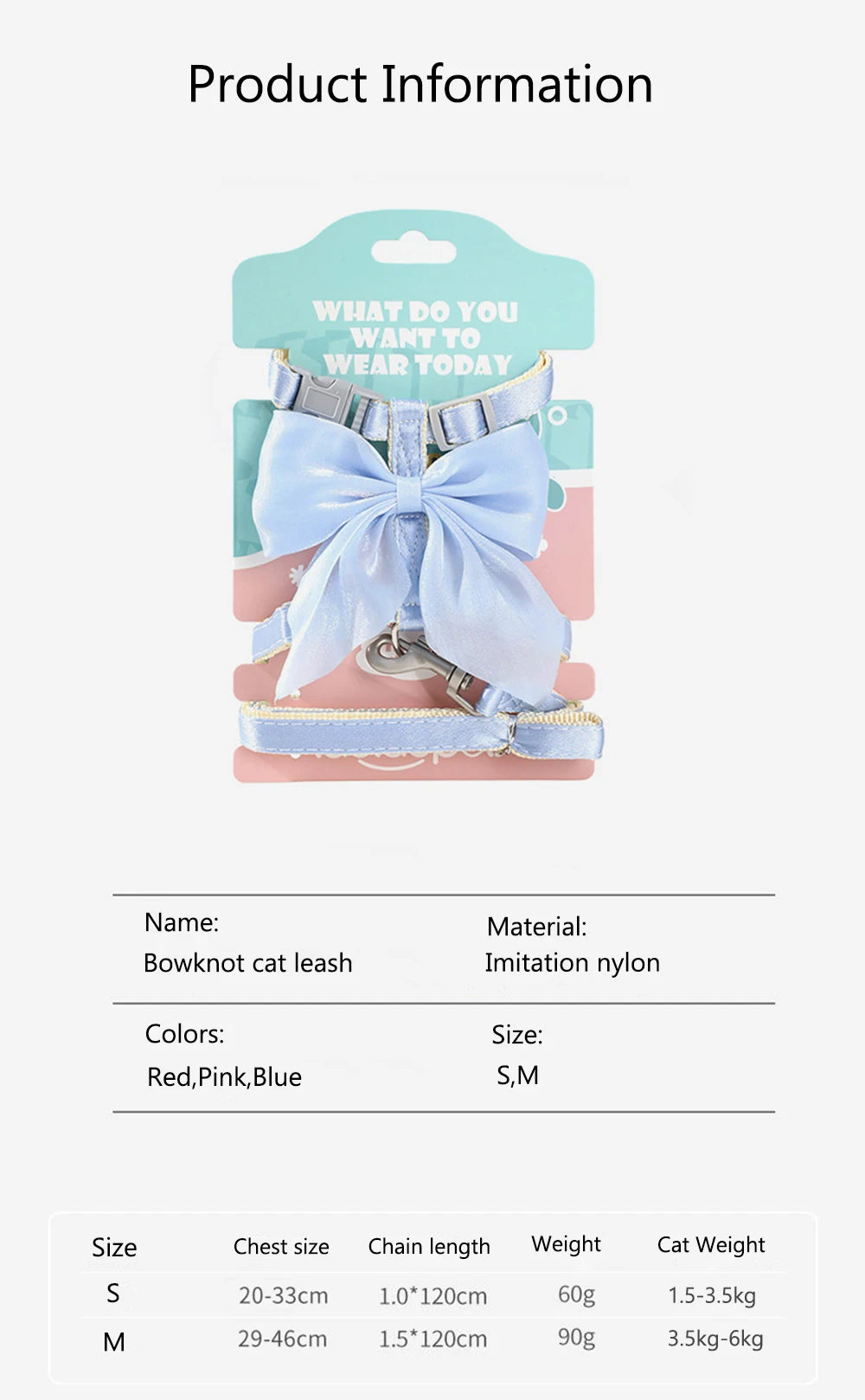 Cute Bowknot Cat Harness Accessories Princess Cat Dress Costumes Kitten Puppy Harness For Cats Leash
